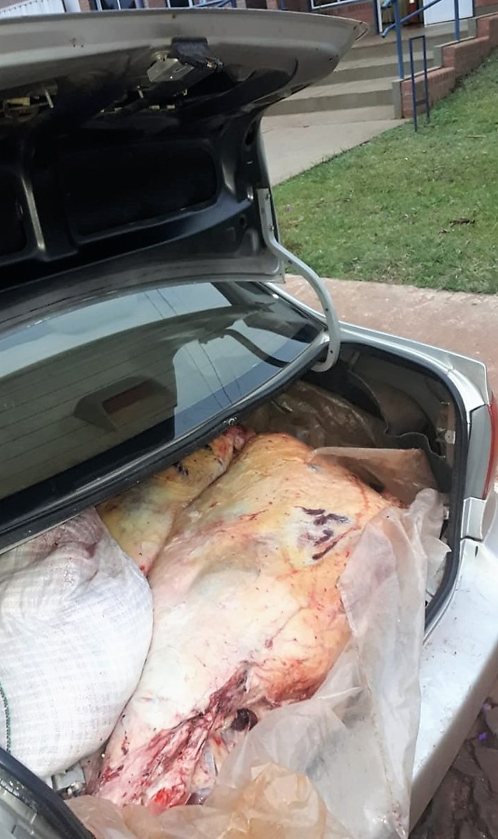 En la jornada de este martes se secuestró carne vacuna al estar en infracción a la Ley 4238/68 LEY FEDERAL DE CARNES VACUNAS y Ley 22.375 y Resolución SAGPyA N° 25/2005 RABIA PARESIANTE