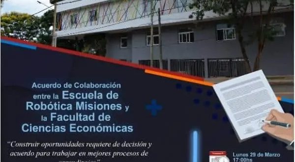 Será el que se firmará el lunes 29, a las 17, en la sede de la Escuela de Robótica, entre esta institución y la Facultad de Ciencias Económicas de la Universidad Nacional de Misiones. “El Acuerdo es resultado del interés estratégico de ambas instituciones puesto en la promoción de la inclusión e innovación educativa a través de la tecnología”, se destacó.