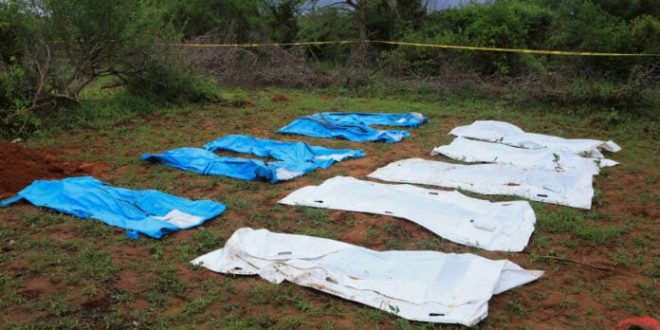 Más temprano el lunes, el jefe de la policía del país, Japhet Koome, de visita en el lugar de los hechos, dijo que la mayoría de las personas fueron halladas en fosas comunes, así como ocho que fueron encontradas vivas y demacradas, pero que apareció más tarde.