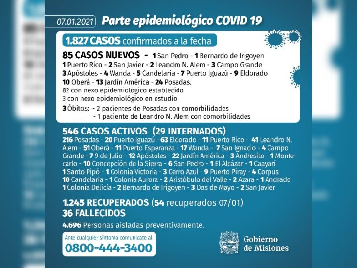 Por otro lado, Misiones vive la peor jornada desde que se declaró la emergencia sanitaria en la Provincia ya que tres personas perdieron la vida a causa del covid-19. Los tres nuevos óbitos fallecieron en Posadas y en Leandro N. Alem, todos ellos con comorbilidades.