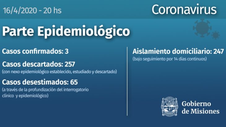 Con estas cifras Misiones continúa sin nuevos contagios confirmados.