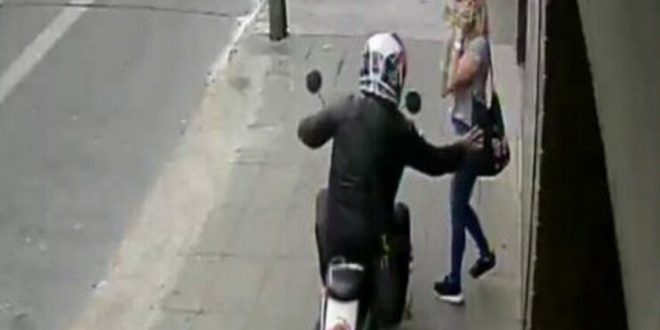 El hecho ocurrió en la calle Belgrano al 300 de Ramos Mejía, y quedó registrado por una cámara de seguridad que captó el momento en el que la mujer es derribada y arrastrada unos metros por la vereda por el ladrón, que usaba casco e iba en moto.