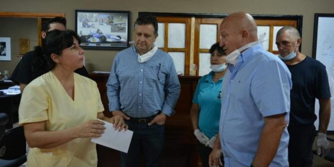 En la jornada de este jueves la directora del hospital Dra. Raquel Matcoski recibió la donación de parte del intendente, Claudio Filippa, el presidente del Iturem Leopoldo Lucas, todo el cuerpo deliberativo, secretaria de gobierno y los secretarios municipales, que consiste en los haberes totales del mes de marzo de los funcionarios, el monto total fue de 500 mil pesos.