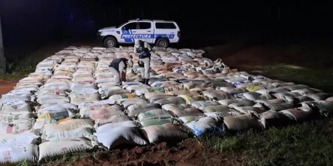 Según informó la Prefectura Naval Argentina el martes, se concretó un procedimiento cuando personal de la institución, que patrullaba la zona fronteriza, observó a varias personas descargando bultos desde un camión y cargándolos, posteriormente, en un bote.