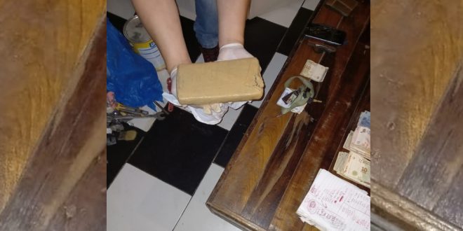 La droga estaba envuelta con cinta de embalar y también encontraron en el lugar pequeños envoltorios plásticos además de la suma de 23.400 pesos en efectivo.