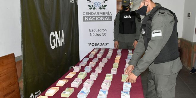 El dinero que hallado en el interior de dos encomiendas, luego de que una mujer intentara retirarlas de una empresa postal en Posadas.