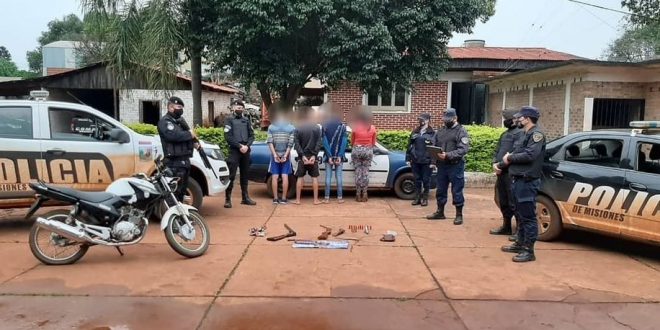 Aye a la tarde a raíz de una serie de allanamientos efectivos de la comisaría de Campo Viera en compañía de las Divisiones Comando Radioeléctrico local y Comando Norte de Oberá, detuvieron a Dalesandro M., Alejando F., José N. y Ángel L., los jóvenes de entre 18 y 20 años están acusados de amenazar y perseguir a otros dos con armas de fuego. Además, se secuestraron cuatro armas de fuego, una motocicleta Yamaha YBR de 125 cc y prendas de vestir.