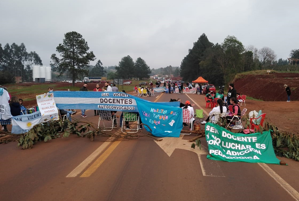 En diálogo con FM 89.3 Santa María de las Misiones, Estela Genesini, titular de UDNAM comentó acerca de esta protesta que “es lamentable que esto esté pasando, pero en la última asamblea de docentes en lucha que se reunió en Dos de Mayo se resolvió extremar las medidas, porque ese acuerdo que firmó el gobierno, que de alguna manera primero intentó tratarlo con nosotros, era inviable desde cualquier punto de vista“.