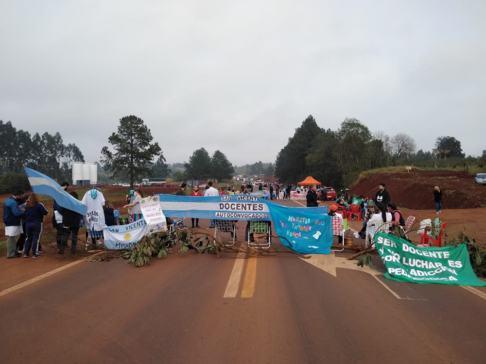 “Hay 3 o 4 cortes sobre la ruta 14, los compañeros están en San Pedro, en San Vicente, en Oberá y Alem están unidos en una medida muy fuerte, y los compañeros de San José. Y sobre la 12 empieza en Puerto Esperanza, allí hay una movida importante, los mismo que en Montecarlo, acá en la localidad de Santa Ana estamos en la zona del peaje, y así hasta San Ignacio y Posadas“, detalló Genesini.