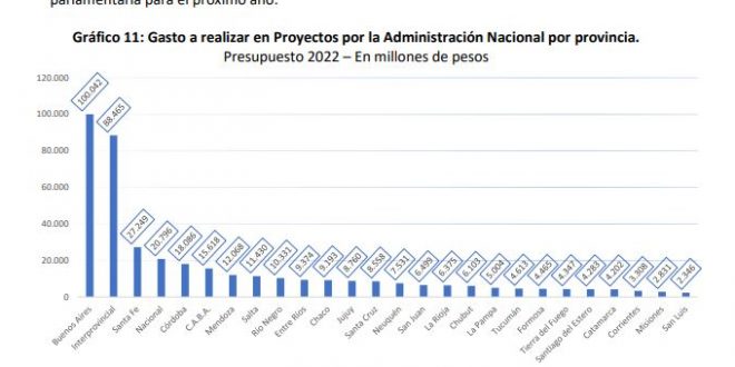 El pasado 15 de septiembre, cerca de la medianoche y en medio de una crisis política, el Gobierno nacional presentó en el Congreso el Presupuesto 2022, que contiene las principales previsiones macroeconómicas, de ingresos y gastos para el año que viene. Según el proyecto, la Administración Nacional prevé gastar en 2022 un total de $13.336.520 millones. De ese monto, un 76% es imputable a alguna provincia en el particular y el restante $114 se atribuye a más de una provincia (interprovincial), a nivel nacional o inclusive a nivel binacional.