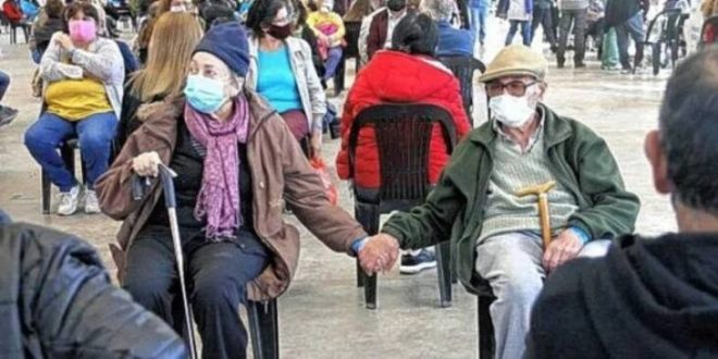 Junto con el personal de salud, las personas de la tercera edad estuvieron entre los primeros grupos para vacunarse. De esta manera, una pareja de abuelos se fue a vacunar y mientras esperaban su turno se tomaron de la mano. Así, la fotografía fue compartida por miles de usuarios en las redes.