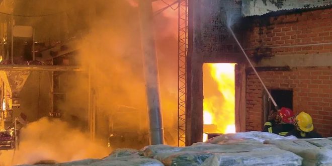 Un voraz incendio causó importantes daños en el predio de una empresa de fabricación y comercialización de pellets de madera y otros subproductos de aserraderos, en la localidad de Capioví. Un joven trabajador de 20 años sufrió quemaduras en el rostro y brazos, y debió ser hospitalizado.