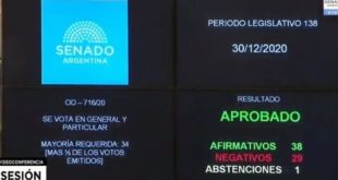 Con 38 votos a favor y 29 en contra y una abstención, la cámara alta convirtió en ley la interrupción voluntaria del embarazo. El debate por la legalización del aborto fue impulsado y sostenido por organizaciones feministas, sociales y políticas, en un entramado único en el mundo que confluyó, de ...